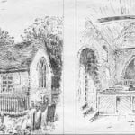 - Pen drawing of All Saints Compton exterior and interior before the 1905 extension