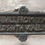 - Typical brass plaque marking a window or other item relocated from the old church.