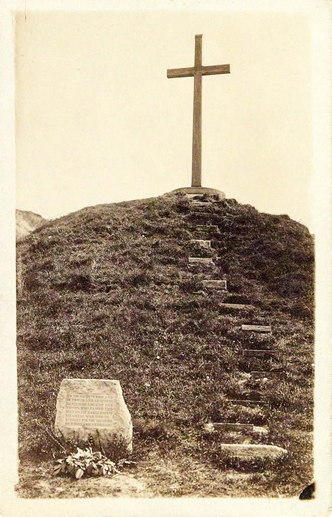 “ The beautiful wayside cross, which has been erected at the southwest corner of Shawford Down, hard by the main road to Southampton, was dedicated on ‘Wednesday afternoon, April 24th, 1918, in the presence of a numerous gathering of subscribers and other inhabitants who had assembled to take part in the brief service. The afternoon was gloriously fine, and old and young alike shared heartily in the unique ceremony, which constituted an all-important incident which, among many others, has enabled the residents to identify themselves with the great war. It was along this road that the Divisions who went out to stem the advance of the enemy passed in long columns in the later days of 1914 and again in 1915, as also intermittently since, and, as was truly said on Wednesday, many thousands of them will not return. The cross, which is of oak, and stands 11ft. high, occupies a commanding position. At the base of the large mound which it surmounts is a stone, which has the following inscription upon it :—