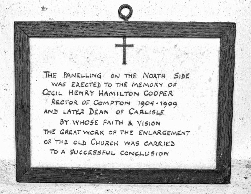The Bishop appointed Cecil Cooper to be Rector of Compton from 1 January 1904. He arrived to find a divided parish which had voted at a public meeting in January 1903, by 36 votes to 16, to build a new church, but the project had stalled.