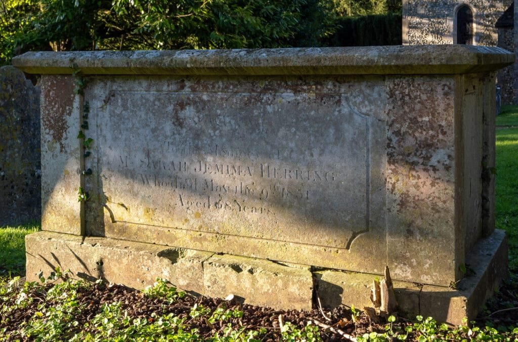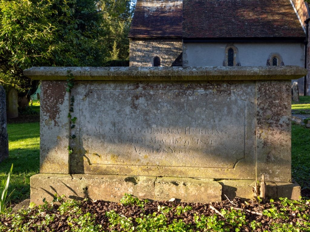 [Editor’s note: Many readers will already know that All Saints Church in Compton Street is a Grade II listed building. But did you know that 7 tombchests in the churchyard are also Grade II listed? One of the chests is described in the Historic England listing as “tombchest 1831 to Sarah Jemima Herring”. After a chance meeting with one of her descendants, who was visiting her grave, he sent me this about her and her family. This is a reprint (with additions) of the article which appeared in the Compton & Shawford Parish Magazine for November 2024]